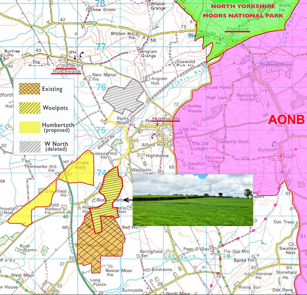 Woolpots Solar Farm is a proposed industrial scale electricity generating plant to be built on a large area of farmland immediately south and south-west of Husthwaite, a historic rural community located in and below the Howardian Hills Area of Outstanding Natural Beauty and below Sutton Bank and the White Horse in the North York Moors National Park. Most of the village is in a conservation area established in 1986 and the stunning rural setting of Husthwaite is one of its key attractions to residents and visitors alike.