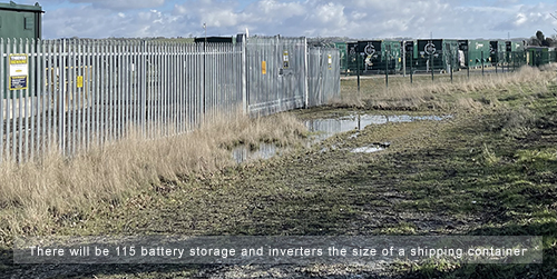 There are to be 32 Lithium-ion (Li-ion) battery containers at Woolpots Solar Farm, which are concentrated together as a ‘Battery Energy Storage System’ (BESS) in the 4 - 5 acre sub-compound to be located by the road just south-east of Husthwaite.