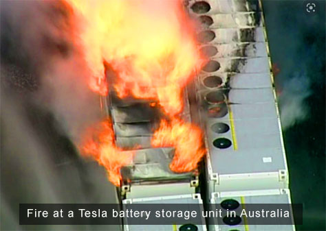 Li-ion batteries are used in electric cars and also in phones, iPads etc. While generally stable, they present a major hazard if they over-heat which can happen for many reasons e.g. failure of a cooling system, a physical impact or even an inherent defect. The more cells in use, the higher the risk of a malfunction. And the consequences could be catastrophic.